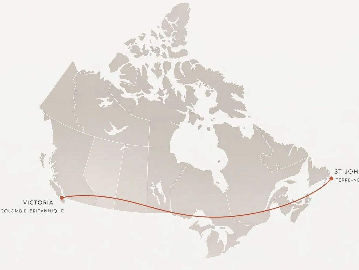 La traversée se déroulera d’est en ouest, de St-Johns à Terre-Neuve, jusqu’à Victoria, sur l’île de Vancouver, en Colombie-Britannique.